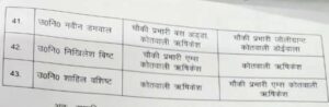 जारी सूची के अनुसार, निरीक्षक कैलाश चंद भट्ट को कोतवाली कैंट से कोतवाली ऋषिकेश भेजा गया है, जबकि निरीक्षक प्रदीप सिंह राणा को कोतवाली ऋषिकेश से कोतवाली डोईवाला स्थानांतरित किया गया है। इसी प्रकार निरीक्षक कमल कुमार लुंठी को कोतवाली डोईवाला से थाना कैंट, तथा निरीक्षक संतोष कुंवर को कोतवाली मसूरी से एसआईआई शाखा (पुलिस कार्यालय) भेजा गया है।