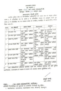 देहरादून, 27 अक्टूबर 2025। उत्तराखण्ड सरकार ने राज्य पुलिस विभाग में व्यापक प्रशासनिक फेरबदल करते हुए 24 वरिष्ठ अधिकारियों के तबादले कर दिए। गृह विभाग की ओर से जारी आदेशों के अनुसार, यह स्थानांतरण तत्काल प्रभाव से लागू किए गए हैं। सोमवार देर शाम जारी आदेश में भारतीय पुलिस सेवा (IPS) के कुल 16 अधिकारियों तथा प्रांतीय पुलिस सेवा (PPS) के 8 अधिकारियों को नई जिम्मेदारियाँ दी गई हैं।