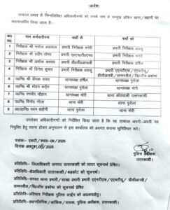पुलिस अधीक्षक द्वारा जारी इस आदेश में सभी स्थानांतरित अधिकारियों को यह निर्देश दिया गया है कि वे तत्काल अपनी-अपनी नई नियुक्ति हेतु कार्यभार ग्रहण करें।